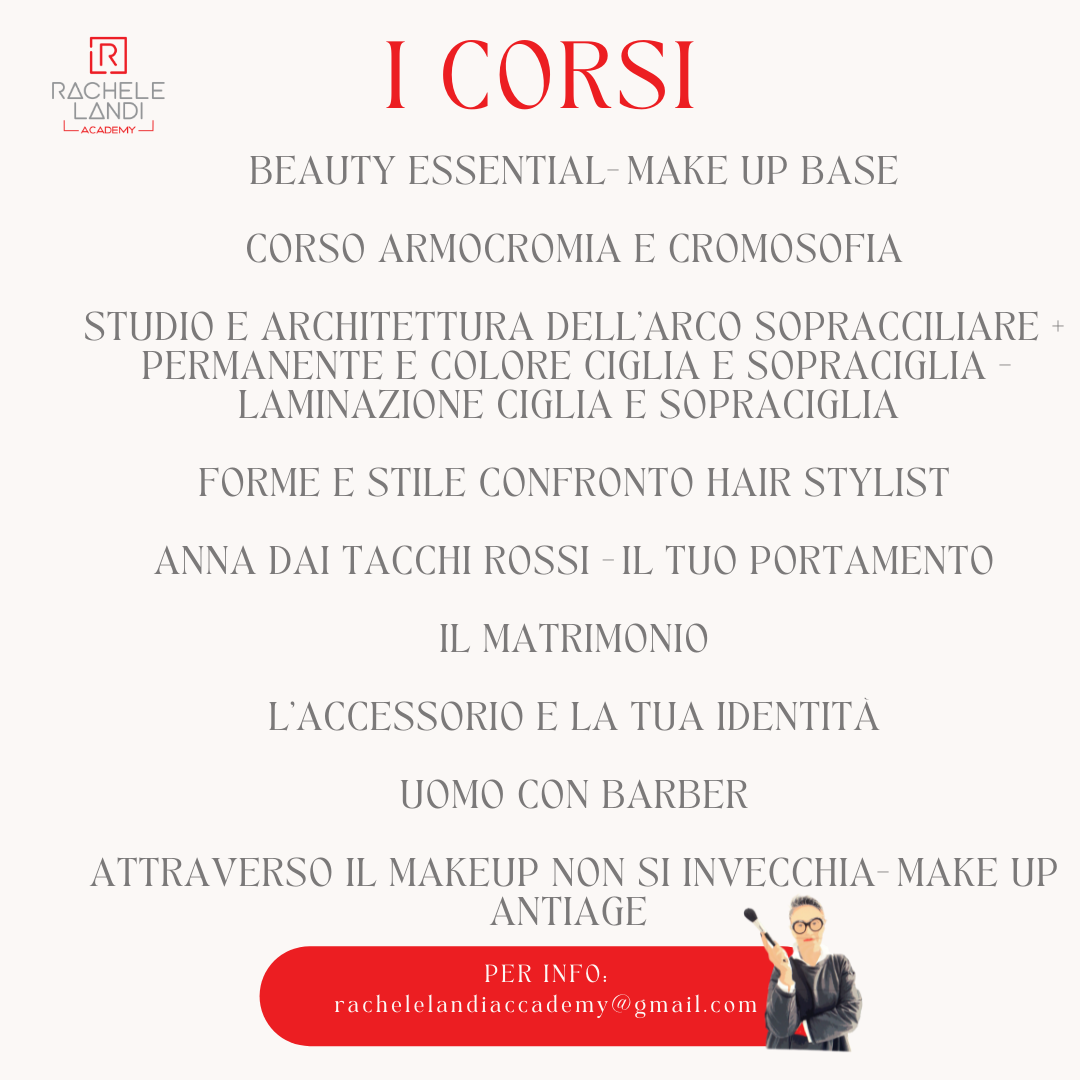 Tutti i corsi si svolgono presso la Rachele Landi Academy e sono a cura di Rachele Landi e di grandi professionisti esperti del settore.